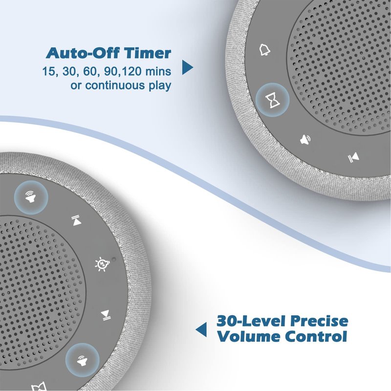 - 2-in-1: Designed with sound machine and alarm clock in one integrated machine. Helps block disruptive environmental noises in high quality 5W drivers and precise 30-level volume control, so you can fall asleep with ease.