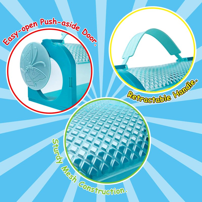 The Critter Cage makes it fun and easy to catch insects, frogs, Lizards, Snakes, Butterfly, Bugs, tweezers tools to help your child grab the most critters possible. Kids will get outside and explore nature with this fun insect activity kit. It's easy to open the swinging door and insert leaves, sticks, food, and water while studying insects or small reptiles.
