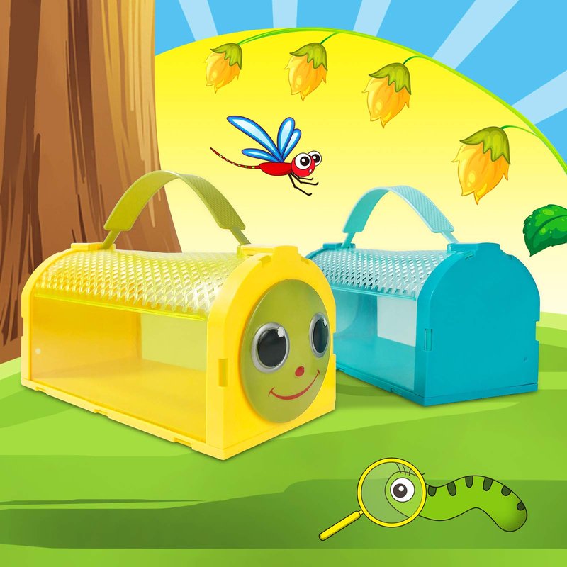 - Double bug catcher kit: This outdoor exploration set include: 2 Bug Case, 2 Magnifying Glass, 2 Tweezers, 2 whistles and 2 bags of fake insect