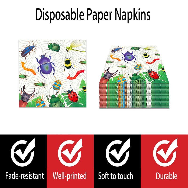- HIGH QUALITY MATERIAL: Our insect paper luncheon Napkins are made of high quality paper, soft and comfortable, strong absorbency line, not easy to tear when using, can keep your table free from spilled beer, juice, soda and food, it is a good helper for you to clean.