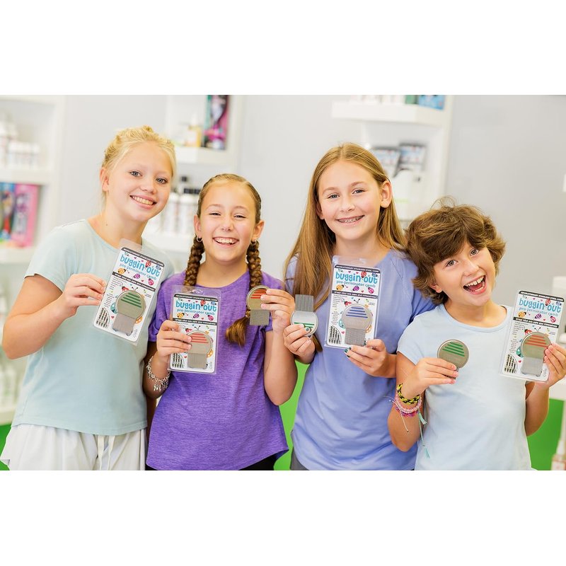 BUGGIN OUT PRO TERMINATOR LICE COMB Whether you have been battling a head lice infestation for days, months, or even years, the Buggin Out Pro Terminator Lice Comb is the professional-grade solution perfect for the whole family! Simple, yet mighty, this spiralized micro-groove comb is used by clinicians around America to effectively, efficiently, and safely remove lice without harsh ingredients. Finally get rid of head lice and pick up this essential household comb today! PERFECT SOLUTION: When a lice infestation strikes, the Buggin Out Pro Terminator Comb is the ultimate defense solution! Effectively remove lice and nits Prevent future infestations Ultra-durable for long-lasting use Pain-free, safe combing Clean alternative to harsh products Professional, premium quality Keep yourself, family, and loved ones lice free with the Buggin Out Pro Terminator nit-free comb! PROFESSIONAL, PREMIUM QUALITY: Crafted with corrosion-resistant stainless steel and spiralized microscopic grooves, these durable lice brushes pull out and remove even the tiniest of lice and their eggs. Perfect to use on everyone in the entire household, simply clean the comb between uses. SHOP THE COMPLETE BUGGIN OUT COLLECTION Buggin Out offers a full line of products to eliminate, prevent, and protect you and your loved ones from lice. Shop the full collection and finally say hello to nit-free living! Buggin Out Lice Prevention Shampoo Buggin Out Dimethicone Oil Treatment Buggin Out Lice Detangler Spray And more!