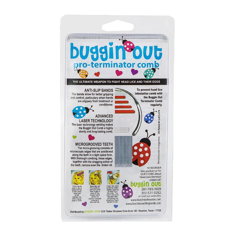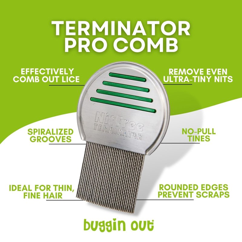 - BUGGIN OUT PRO TERMINATOR LICE COMB Finally get rid of lice for good with this clinical-grade, stainless steel comb. Pain-free and perfect for children with ultra baby fine hair, this comb is the ultimate defense against head lice.