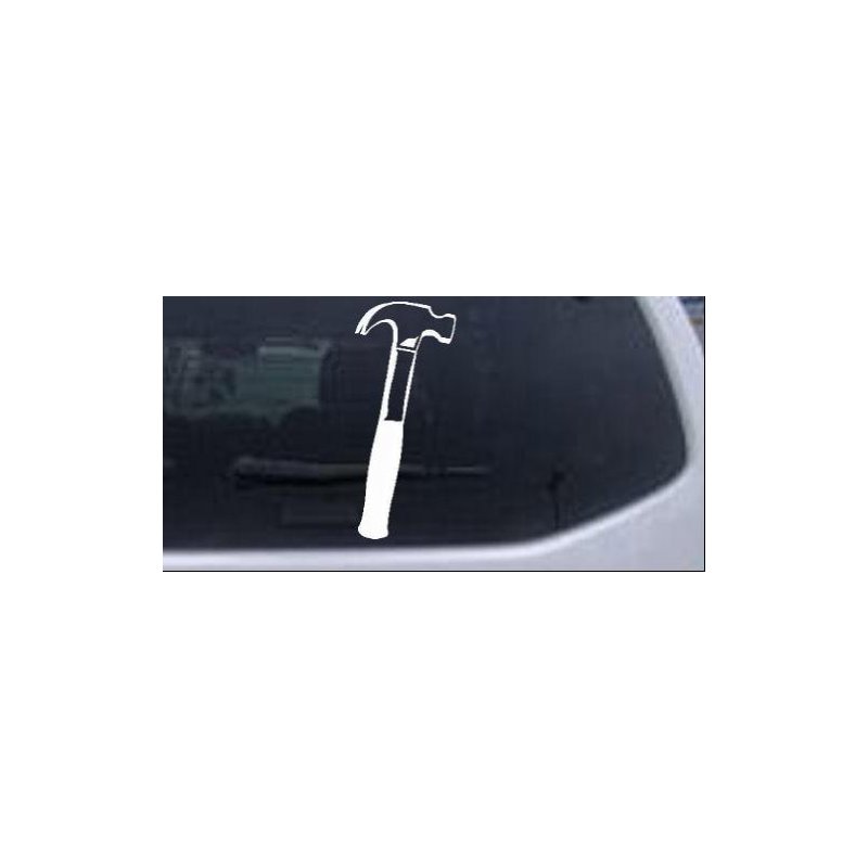 Builder Carpenter Contractor Hammer Business Car Window Wall Laptop Decal Sticker -- White 8in X 3.5in