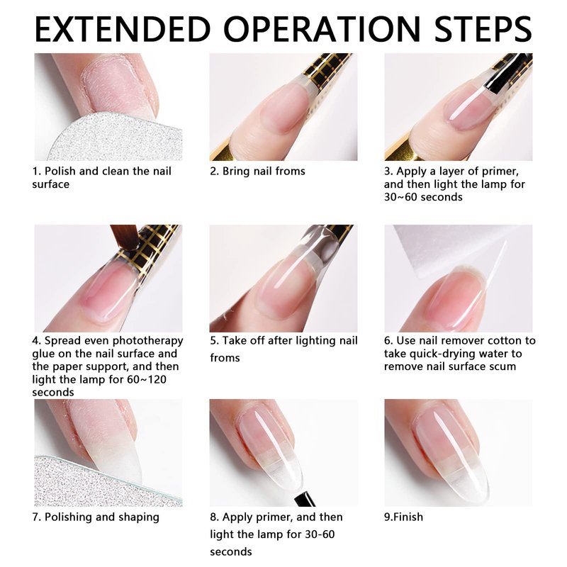 - Professional UV Builder Gel : UV Gel needs to be cured under the UV/LED lamp for 120S , celar color is very bright.Before using the gel to prevent peeling, please clean the nail surface first ,It can last for more than 4 weeks.Do a skin test before use, and discontinue use in case of allergy or other adverse reactions.