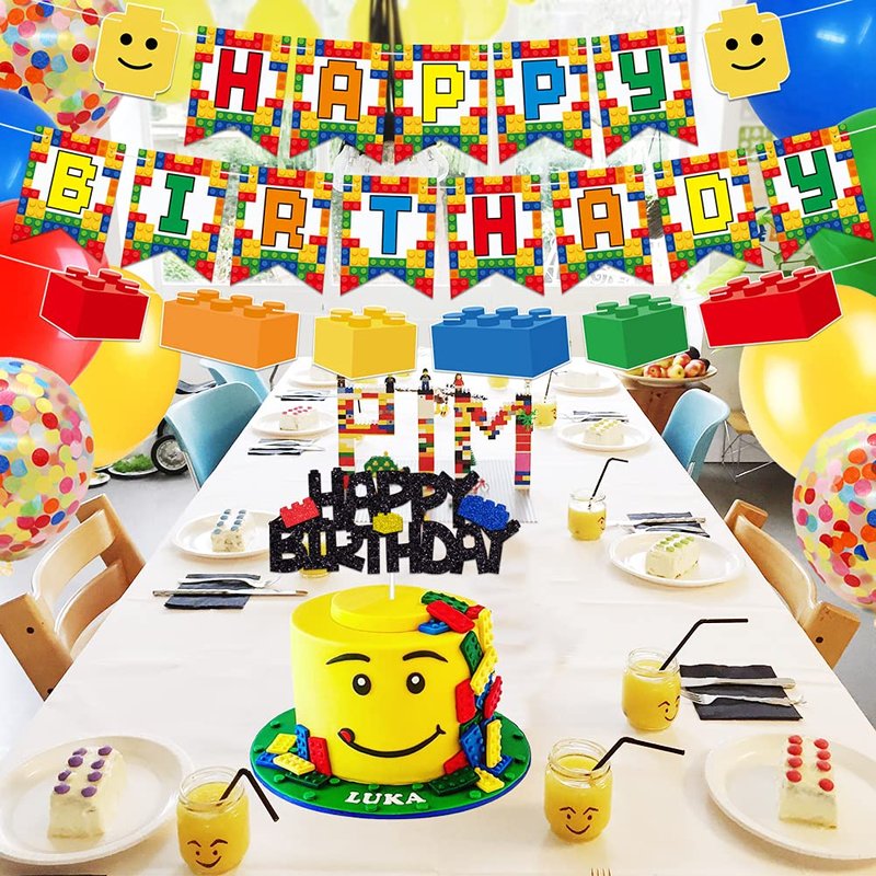 - Looking for something special to add more atmosphere to your baby shower or birthday party? Our building blocks happy birthday party pack will be your best choice! Perfect for building blocks colorful summer or any themed birthday party photo prop and any events you want. Nothing is better than our kit with a variety of colorful elements. Let's thrill your guests wherever the celebration occurs!
