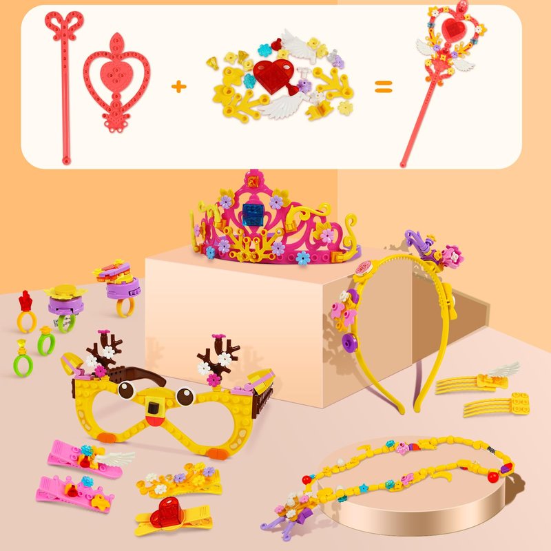 Building Jewelry Craft Toys for Girls DIY Making Kit Princess Building blocks Stem Educational Toys Dress Up Girl Toys for 5 6 7 8 9 Year Old 6-8 8-10 Birthday Gift Idea Party Favor Crown Wand