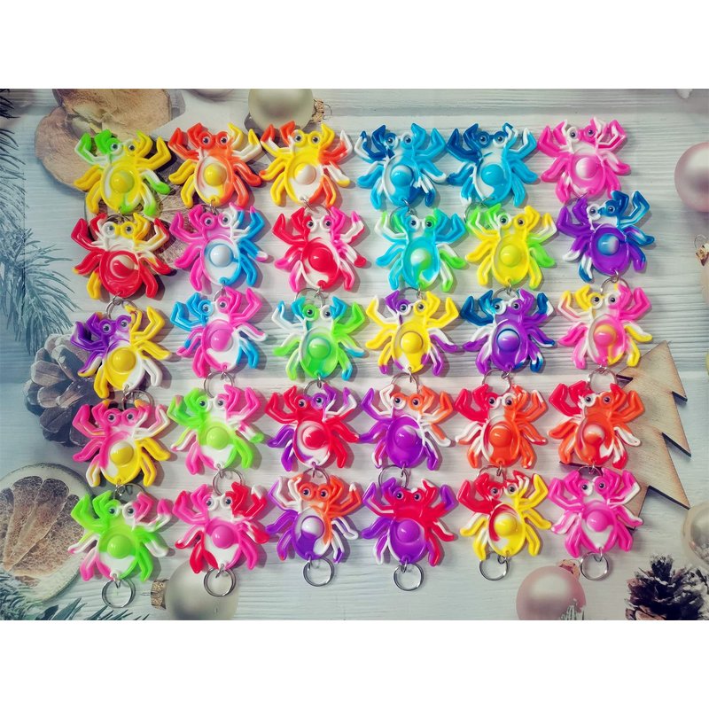 - 2,Made of silicone,package included:30 packs Spider Animal mini pop key chains,Random color to send
