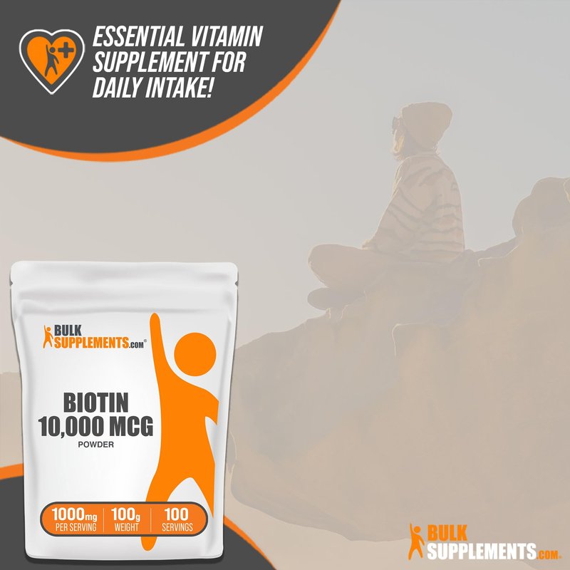 - ✔️ Essential Vitamin for Daily Intake: Get your daily intake of Vitamin B! Our Biotin powder, in Biotin 10000mcg, provide a simple and convenient way to get the essential daily Vitamin B7, a hair and nails vitamins for women & men, your body needs. Take every day and reap its natural benefits for overall health and wellness.*