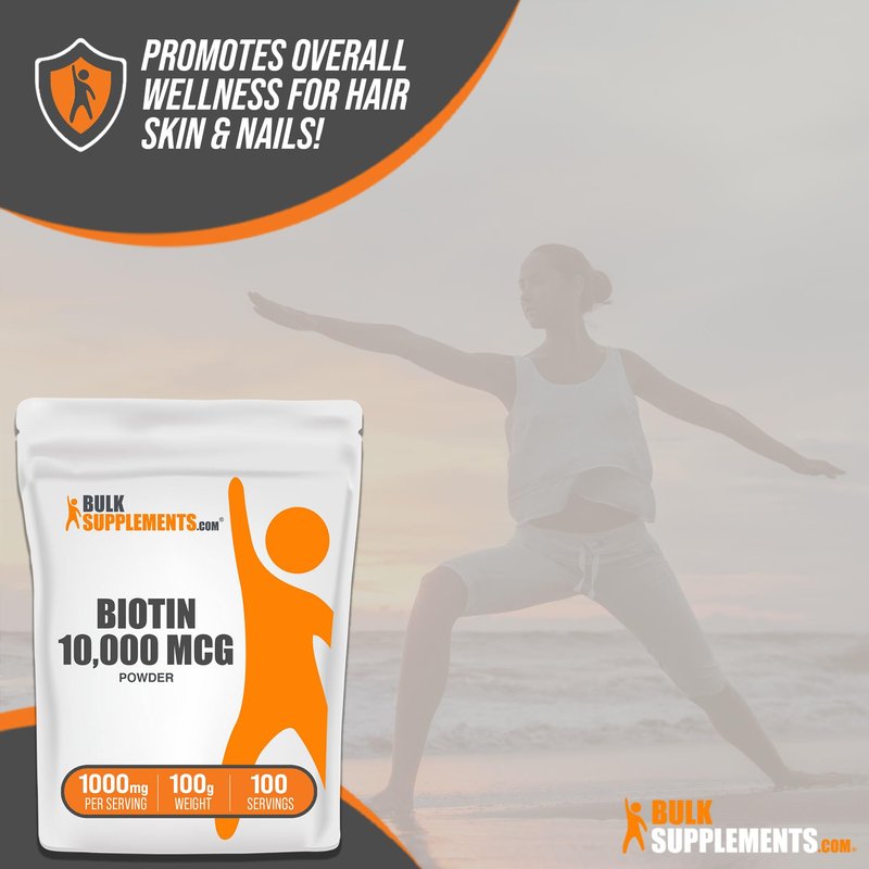 BULKSUPPLEMENTS.COM Biotin 10000mcg Powder - Biotin Powder, Biotin Supplement, Biotin Vitamins for Hair Skin and Nails - Gluten Free, 1000mg per Serving (10mg Biotin), 100g (3.5 oz)