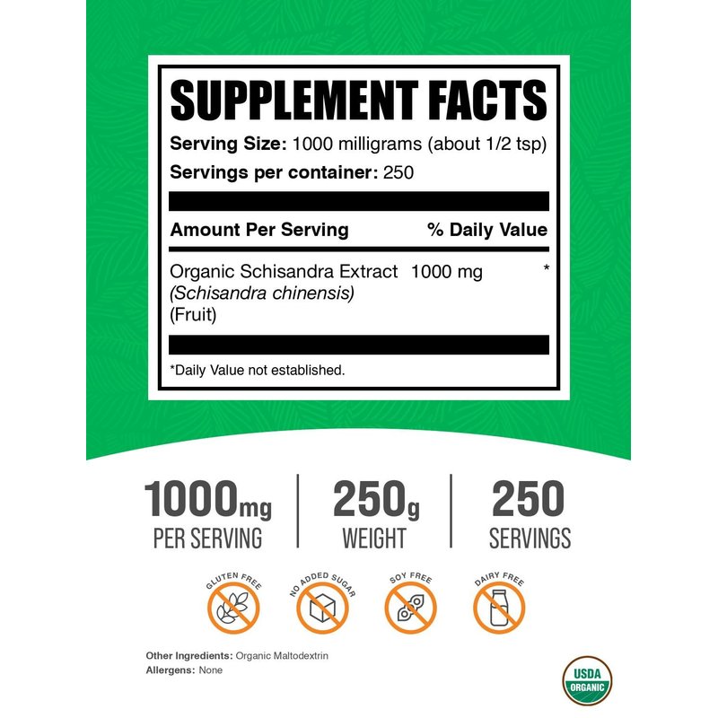 BulkSupplements.com Organic Schisandra Extract Powder - Schisandra Supplement, from Schisandra Berries - Herbal Supplement, Gluten Free - 1000mg per Serving, 250g (8.8 oz) (Pack of 1)