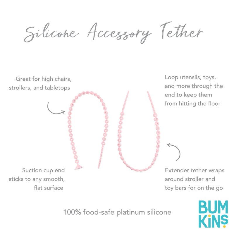 - SECURE BABY STUFF – Strap together pacifiers, teethers and toys; great during mealtime and with Bumkins’ Silicone Sensory Placemat, helps secure utensils or sippy cups; suction tether to highchair trays or tables; attach to infant carriers and strollers
