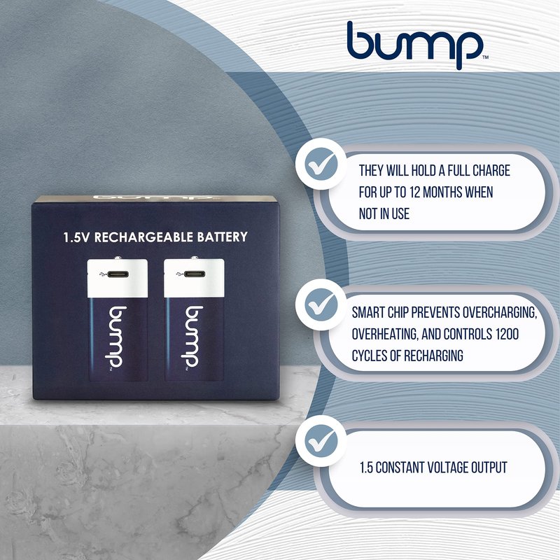 - πβ‘ SUSTAINABLE & COST EFFECTIVE: BUMP D Rechargeable Batteries are the more sustainable, superior, and money saving solution for all your battery needs, as they can be recharged up to 1000+, reducing waste and money spent.
