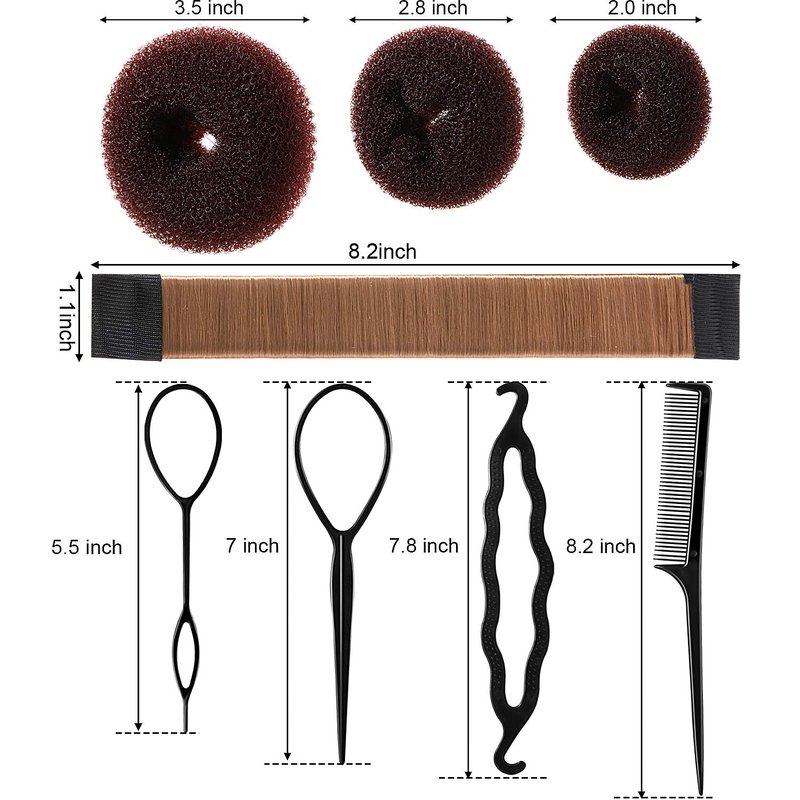 - Complete hair styling set: you can get what you see in the first picture, there are 3 donuts, 2 bun makers, 4 ponytail tail hair tool, 2 hair elastic bands, 10 bobby pins, which can satisfied all you hair style