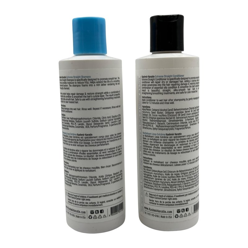 3 PC Kit includes: 8oz Extreme Straight Shampoo, 8oz Extreme Straight Conditioner and Paddle brush