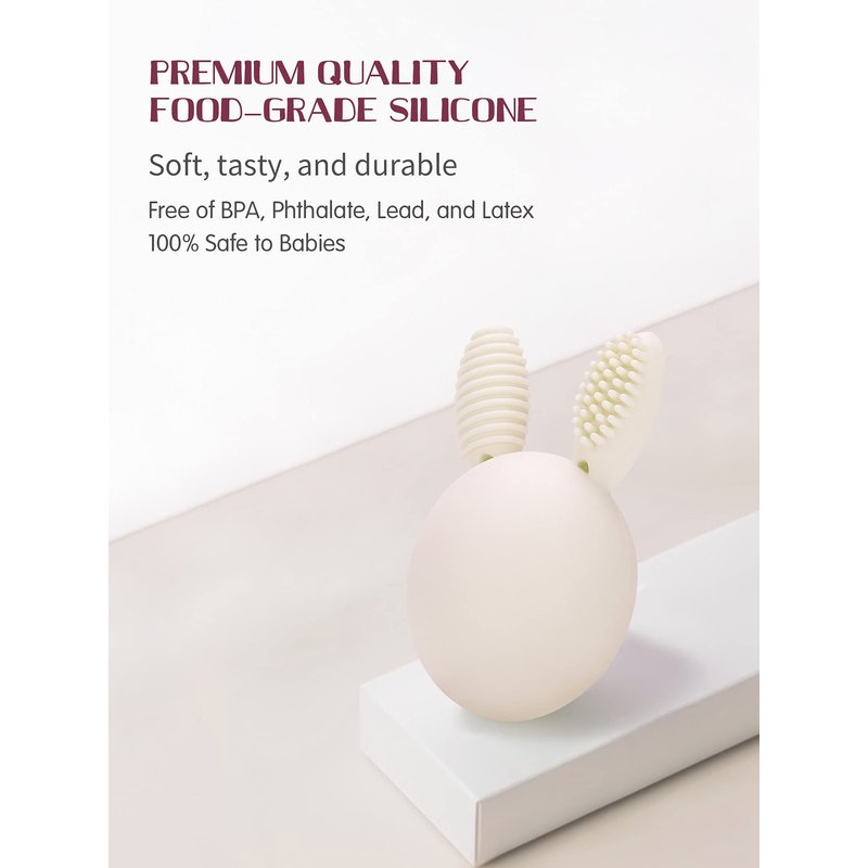 - NOT JUST CUTE BUT MORE PRACTICAL: Unique bunny egg design, very easy to hold. Combined teether, teething toothbrush, and rattle, ultrasoft silicone massage can effectively soothe baby's tender gums, while keeping baby's teeth and gums clean and healthy.