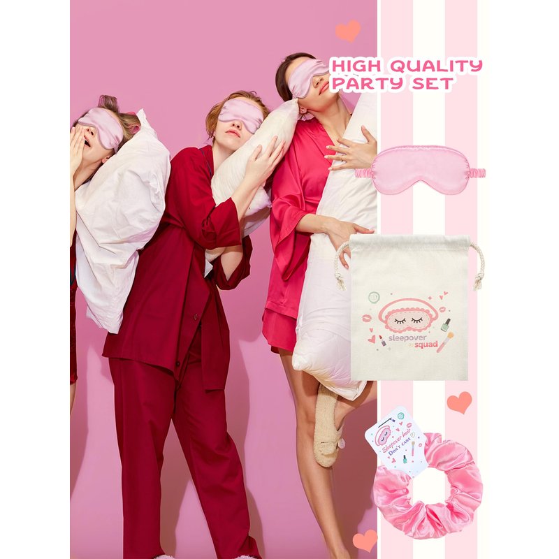 Bunnycool 24 Pcs Sleepover Party Supplies Birthday Party Favor with Satin Eye Mask Satin Hair Scrunchies(Pink)