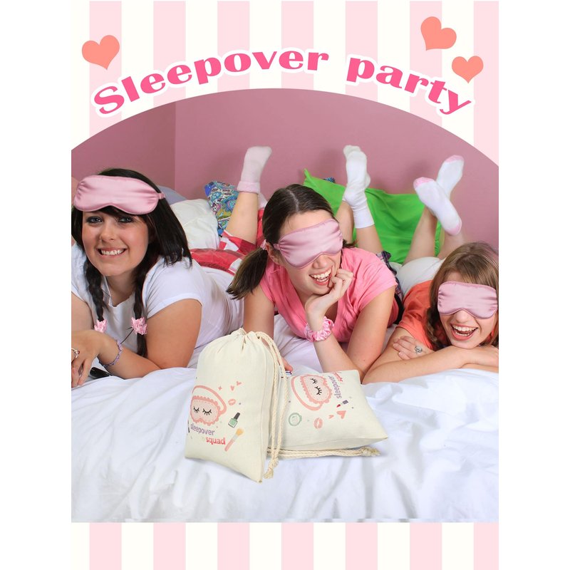 - Reliable and Skin Friendly Material: made from polyester cotton material, the bags of our girls sleepover party supplies show resistance to tear and reusable; The hair scrunchies and eye masks are made from satin, a soft and skin friendly material that provides a comforting touch; Moreover, each eye mask comes individually packed, maintaining its pristine condition until usage