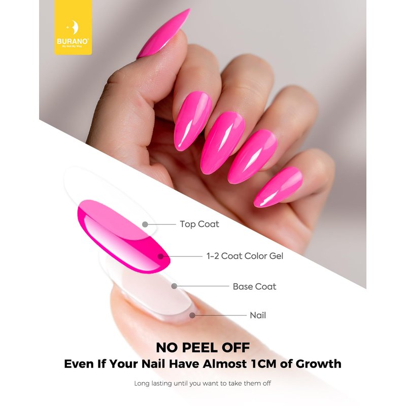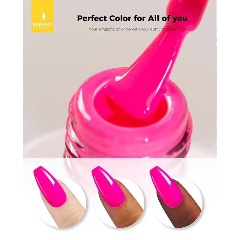 - 💙【Long Lasting for 28+ Days】BURANO Nail Gel Polish can last 21+ days for your nail, no lifting, no damage nails colors nail polish. So many colors to choose: gel neon gel, hot pink nail gel, green gel polish, pink nail polish, green gel polish, bright gel polish,blue gel polish,orange gel polish.