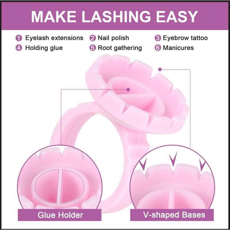 Burboeiy 100PCS Glue Rings Lash Rings for Glue Glue Rings for Eyelash Extensions Eyelash Glue Holder Lash Glue Rings Smart Glue Cups