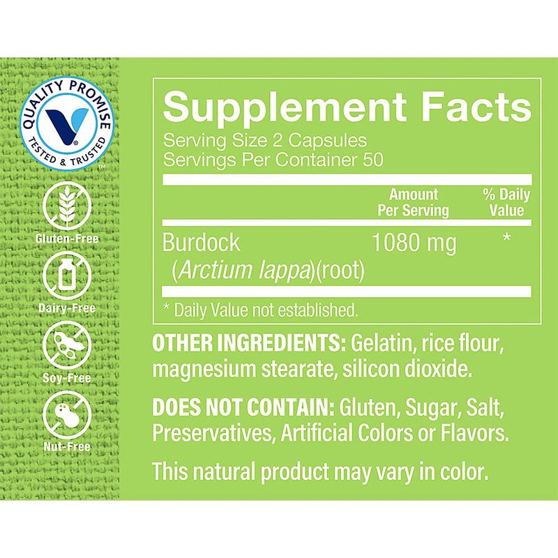 - Burdock Root: A traditional herb in capsule form. Historically believed to clear the bloodstream of toxins.