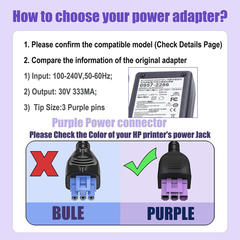 - 【Specifications】- Input: 100-240V,50-60Hz; Output: 30V 333MA; Connector size: Purple 3 pins; Condition: Brand New.