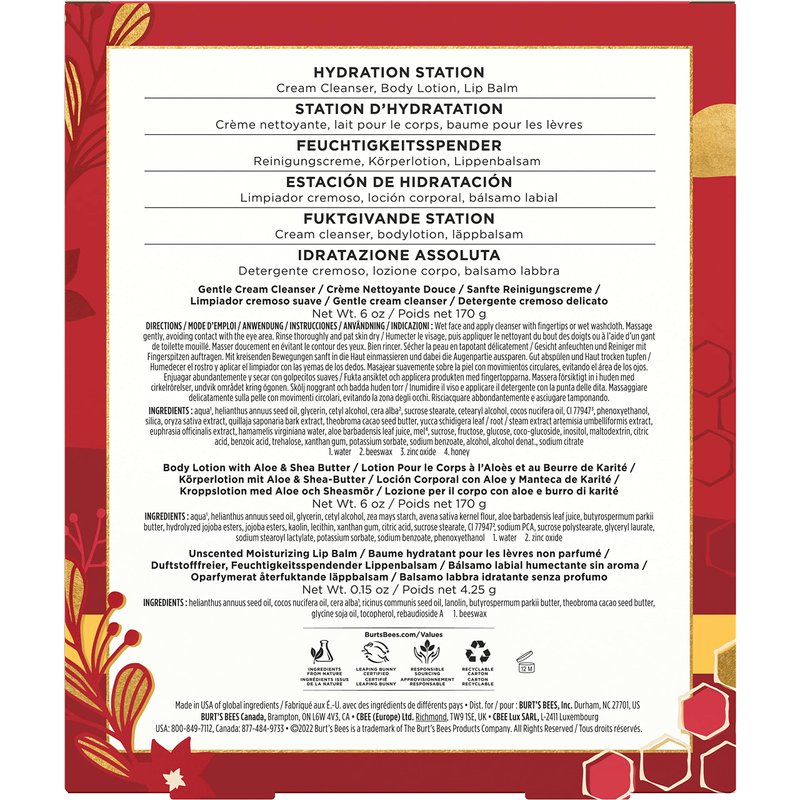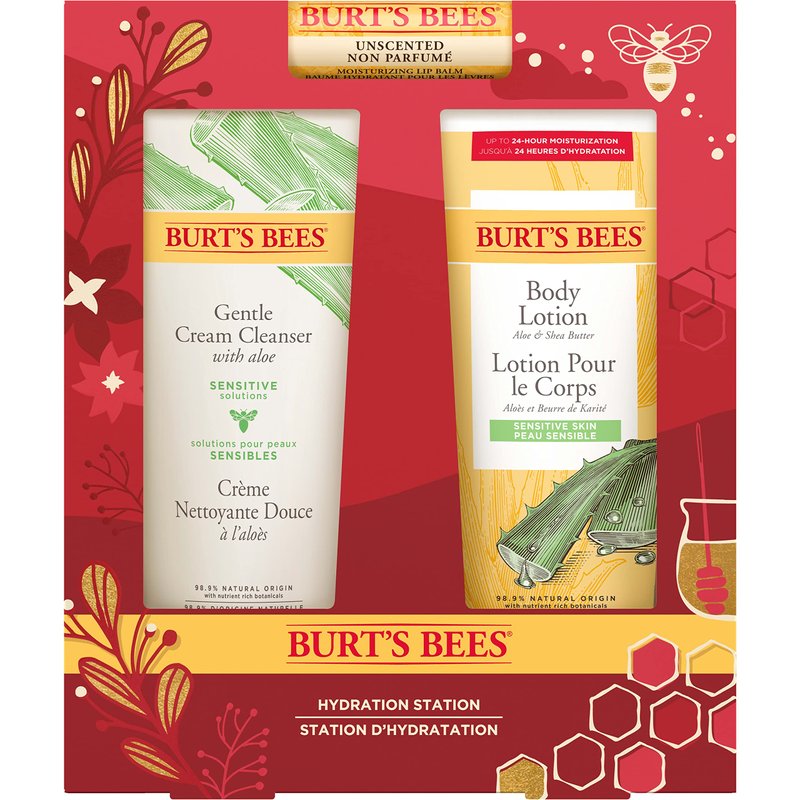 - THE PERFECT GENDER NEUTRAL HOLIDAY GIFT: One Burt's Bees Hydration Station Lip Balm, Gentle Cream Cleanser and Healing Body Lotion Gift Set for men and women in a beautifully packaged holiday gift set