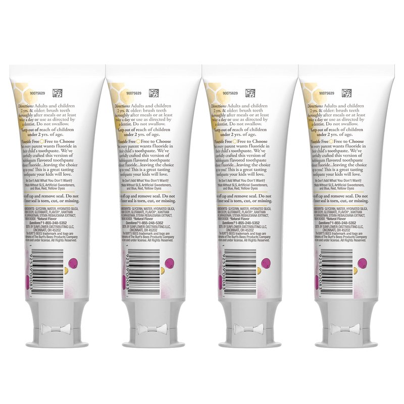 Burt's Bees Kids Toothpaste, Natural Flavor, Fluoride Free, Bubble Bee, 4.7 oz, Pack of 4