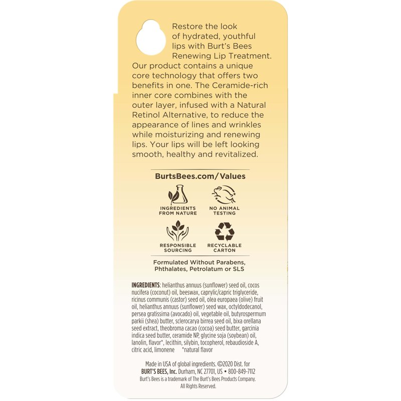 Burt’s Bees Renewing Lip Treatment, With Ceramides and Natural Retinol Alternative, Hydrates and Reduces Appearance of Fine Lines, Natural Origin, 0.16 oz