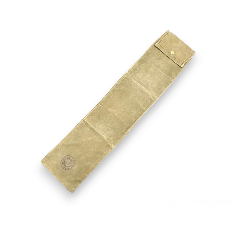 Handcrafted waxed canvas (12oz fabric) bucksaw bag. Perfect for takedown buck saws and camp saws from most makers. This bag will also carry a variety of items ranging from small cooking irons and tripods to take down fishing poles and spears. Brass snap enclosure. 27" Long when closed x 5.5" Wide. At Campcraft Outdoors, we're inspired by the golden age of camping and woodcraft. The 1840s through the 1970s represents a unique time in American history when warriors returned home from the various theatres of battle to reflect and heal in the wild spaces of their homeland. This recreation spurred innovation, creating the outdoor industry we enjoy today. As a family-owned small business, we've taken what we've learned from these outdoor innovators and applied it to the gear we manufacture. We use strong materials, keep things as light as possible, and multifunctional. We also handcraft every piece of kit, be it a hand-waxed bag or hand-forged knife; someone has put a bit of themselves into each of our unique products. We create because we can, we make because we enjoy it, and our only competition is ourselves. We do it the old-fashioned way, not because it's easy, but because it works. Campcraft Outdoors, Ruggedly Independent