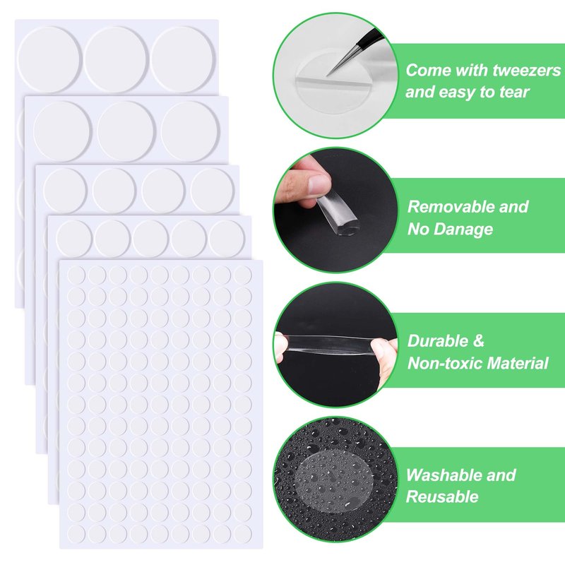 - 【Easy & Convenient to Use】Equipped with a pair of tweezers, the double sided sticky dots can be easily peel off. This clear adhesive putty requires no rubbing and no need remove the protective paper. Adheres easily to most surfaces, making this poster tack perfect for use as a general replacement for bolts and screws.