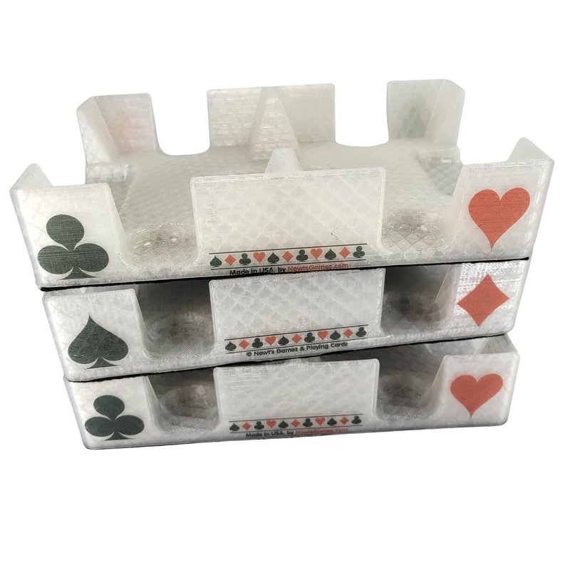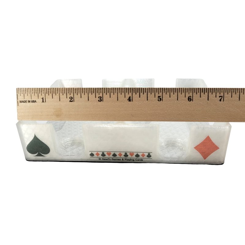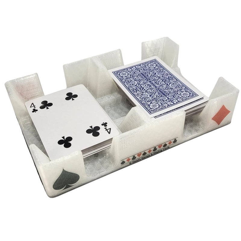 This Cardian brand card tray is capable of holding either wide or narrow size playing cards in the normal and side-stacked positions, which makes it great for card games that require you to alternate directions during card play. With its beveled edges and thumb or finger tabs, it is easier to draw and discard playing cards, making it a wonderful companion for avid card players of all ages.