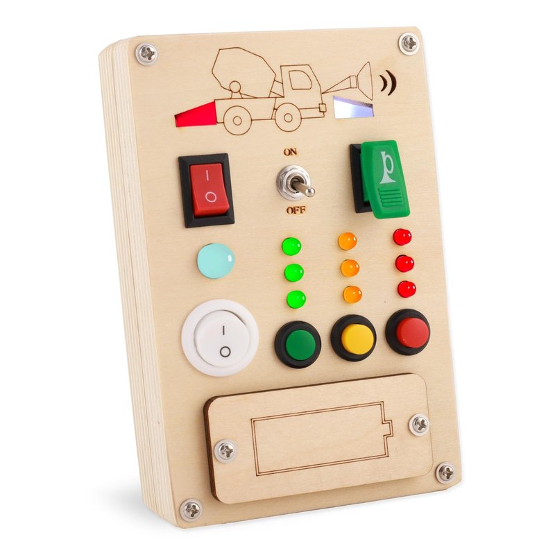 the is the new light up toy we design a engineering vehicle theme,the lights are very like the taillights,headlights and horn of the vehicle,the kids will be addicted in playing them,so this toddler busy board will surely be the perfect pick that your kids will enjoy.