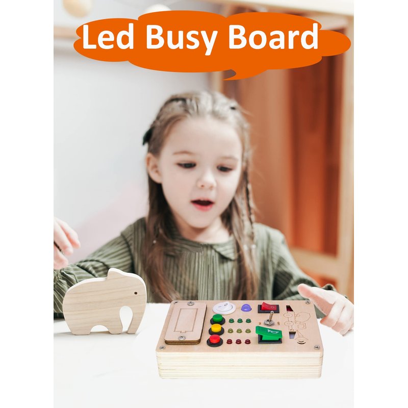 - Natural and Safe toddler busy board wooden toy:Made of high quality solid-wood board,the surface is smooth and there are no sharp edges,the light is soft which is friendly to your little one,so it is a enviromently and safe montessori toddler toy,it powered by 2 AA battery(not included).