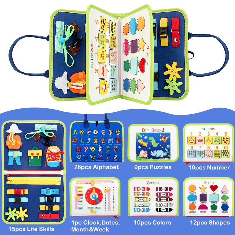 - Best Entertaining Toys: Our toddler busy board is a practical educational toy that basically contains everything you want or need to learn for your little one, allowing your child to feel the company of their parents and enjoy parent-child time during the learning process