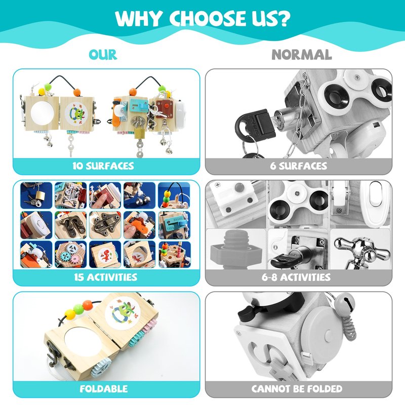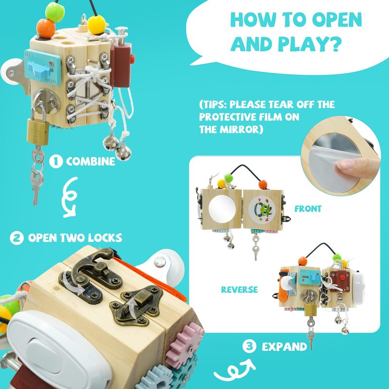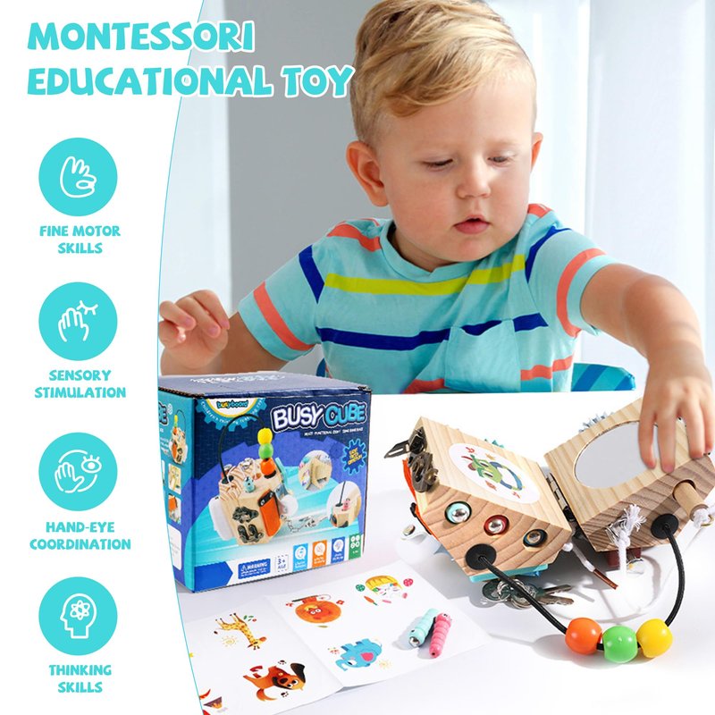 - 🔔Improving Hands-on Ability - Educational toys for toddlers on this busy cube that helps kids to develop fine motor skills. Assists babies to practice hand-eye coordination using real world challenges. Or just give them quiet time to focus on the natural learning activities.