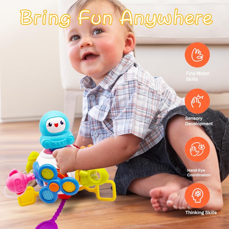 - 【Montessori Busy Toys】: This Montessori toy set features 8 activity panels offering diverse experiences, including an extendable rocket, a rotating steering wheel, a simulated plug, a squeeze button, a pushable spaceship, and a spinning spinner. Ideal for baby, these toys captivate and entertain children for hours, fostering creativity and imagination.