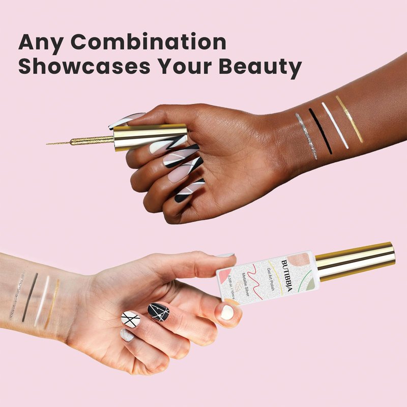 - 【Gel liner nail art set】4 must -have colors gel polish liner for daily nail art designs,10ml/0.33fl oz.Sexy black, virginal white,plus shimmery gold and silver glitter,we believe these colors can be active on our nails all year round.
