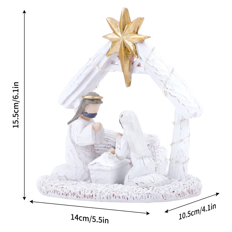 - 【Nativity】- This Christmas nativity playset consists of 4 pieces, including a star with lights, Joseph, Mary, and the baby Jesus in manger figurines. All the pieces are there to recreate this beautiful story.