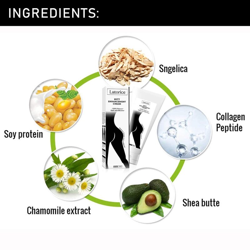 - Butt Enhancement Cream is base on plant formula, nourishes muscle cells and promotes the growth of buttock muscles. The ginseng ingredientscan enhances skin cell surface activity and restrain aging.