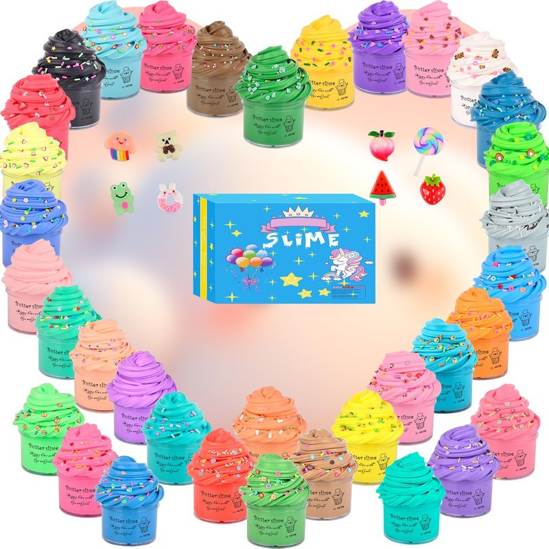 • 💎Party Slime:The 35-pack butter slime kit has a large quantity of slime, allowing multiple children to create together and experience the fun of slime parties
