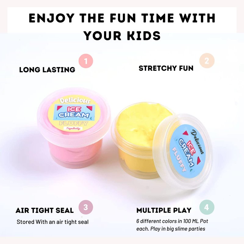 - ICE CREAM CAKE SCENTS - Get 6 color butter slimes, each one of them has a cake scent that immerses adults and kids alike in a pleasant atmosphere for your favorite party favors times.
