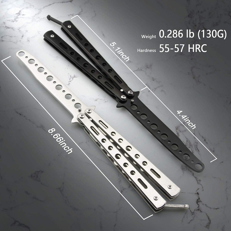 - GOOD BALANCE - Handles are skeletonized which can reduce weight. Calculated perfect weight balance of these butterfly knife trainer. Perfect center of mass to ensure you can flip it smoothly.