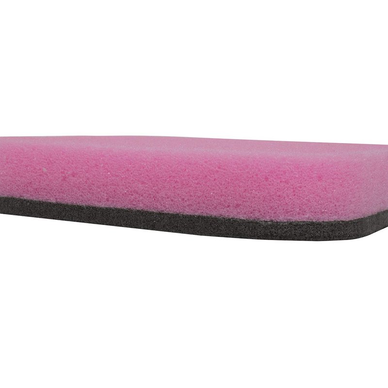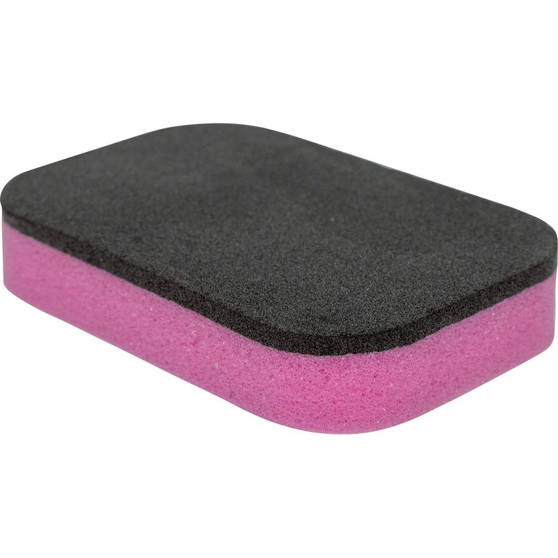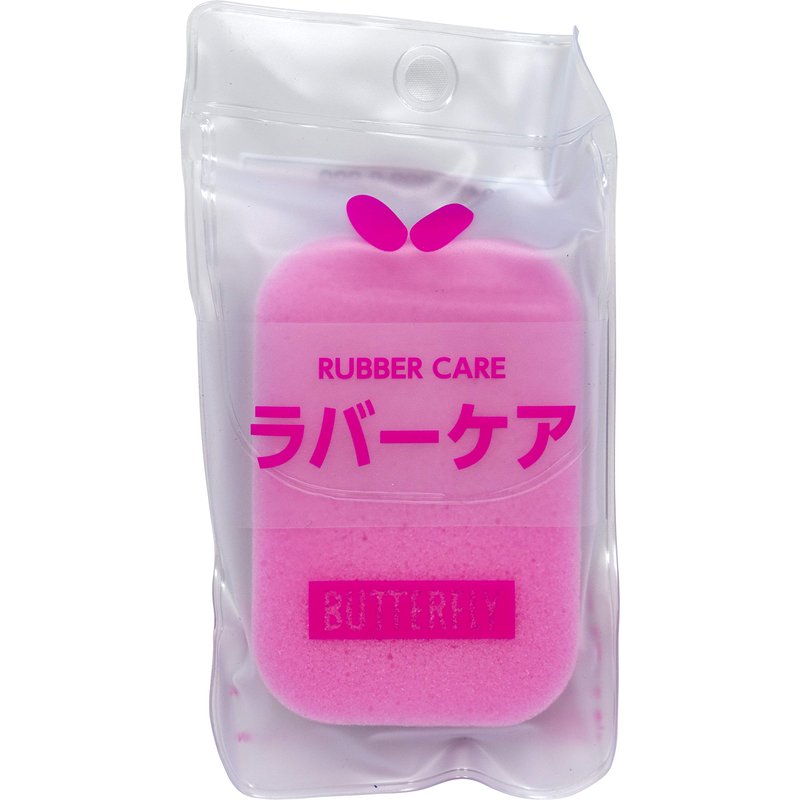 Cleaning sponge for rubber. Pink side for regular cleaning. Black side for intense cleaning. Goes well with Butterfly spin refresh. Cleaning sponge offers a soft absorbent side that acts as a squeegee and a dense side that helps remove more debris