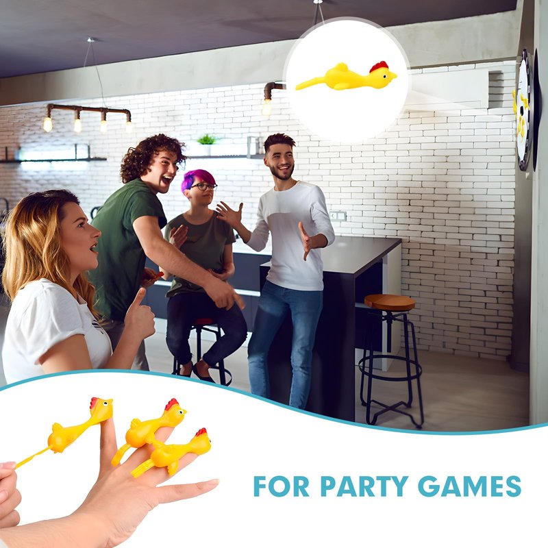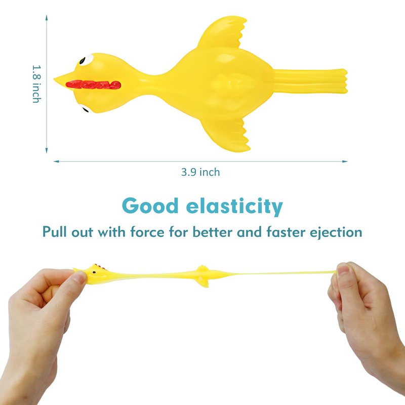 - Easy to play: Pull and stretch the tail of the slingshot rubber chicken to make it fly farther, bounce off walls or hit objects. The whole process is simple and fun. Rubber chicken is suitable for children over 10 years old.