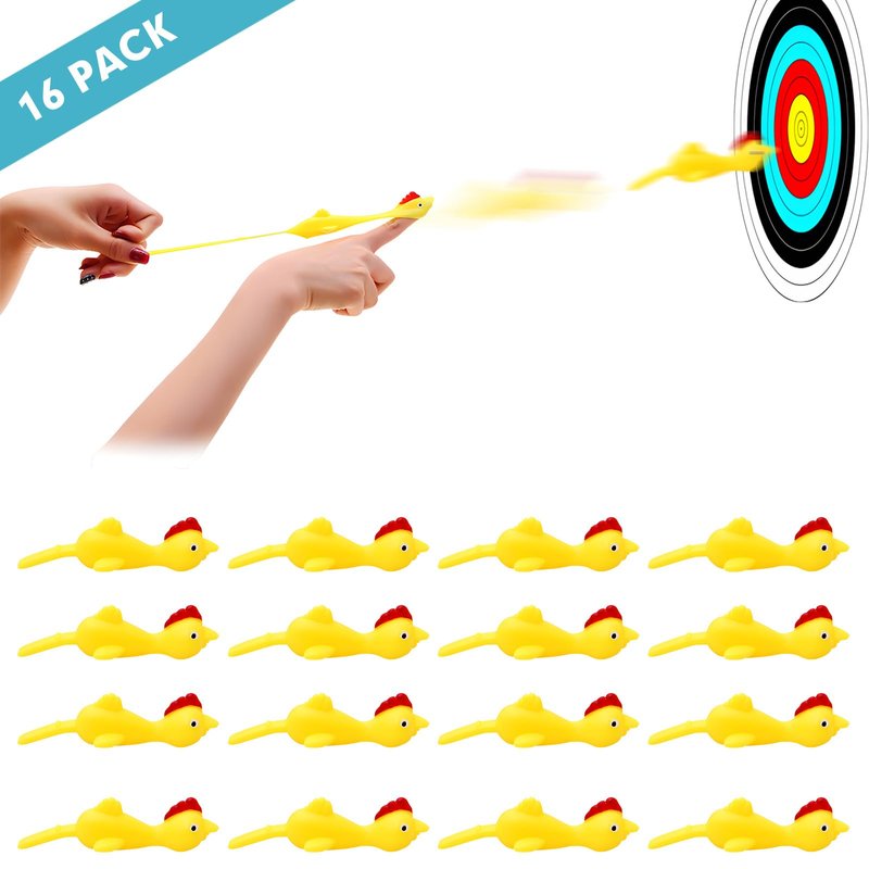- Quantity: Set contains 16 slingshot rubber chickens. These resilient and fun rubber chickens are available in sufficient quantities for your daily use.