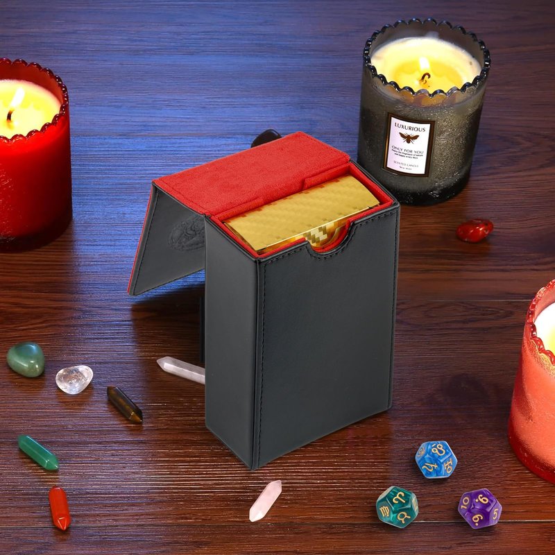 Buweeo Tarot Card Case/Holder, Single Deck PU Leather Card Holder for Most Standard Size Tarot Cards or Playing Cards, Black and Red