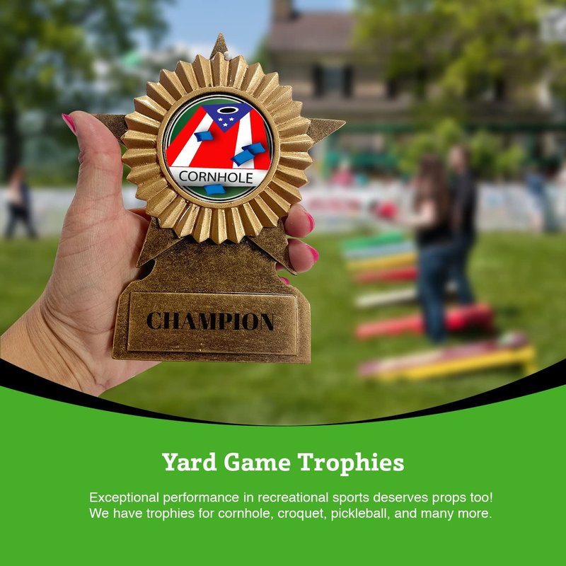 - CRAFTSMANSHIP & CUSTOMIZATION: This gray all-star resin croquet trophy is 6 and 1/4 inches tall. It displays a unique croquet illustration and has a genuine white marble base. We offer customization services on most items by engraving your unique message on the plate of the trophy.