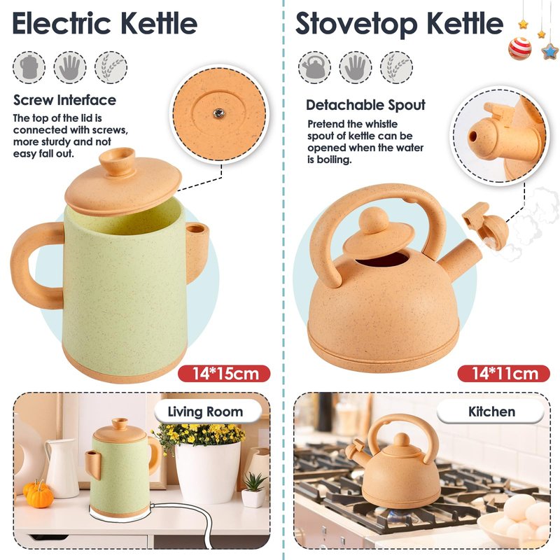 Kitchen Pretend Play Toys - 13 PCS kitchen toy included 3 set Pots and Pans, 1 Kettle, 1 Teapot, 6 pieces Kitchen Cooking Utensils, 1 Egg, 1 Cutting Board. Full accessories give children a better gaming experience. Realistic Toy Kitchen Accessories - The cookware toy comes with realistic shapes, lids that can be opened, handles for support and a variety of utensils to hang to make this toy like the real. Let children fall in love with cooking. High Quality - Made of high quality plastic materials, durable. Reusable and easy to clean. NOTE: Do not put hot water into the toddler kitchen set. Recommended for children over 3 years old. Role Play Game - Kids can pretend to cook with pots and pans to prepare hearty meals for family or friends. Role play as a little chef. Gifts for 3 4 5 Years Old - Not only a role play game but also an educational toys. Exercise children's imagination, hand-eye coordination, etc. An ideal gifts for 3 4 5 years old kids/boys/girls/toddler.