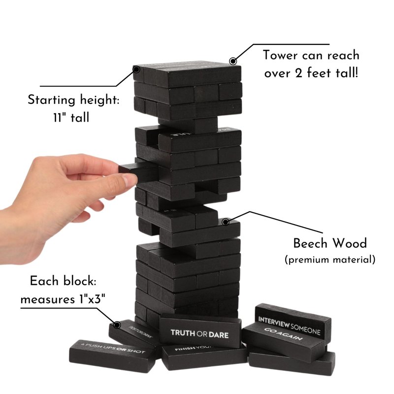 - PERFECT PARTY STARTER - If you like drinking around people that are laughing and having fun, here's your chance to bring that to any occasion. This classic tower game is a great icebreaker or pregame activity.