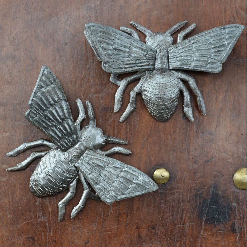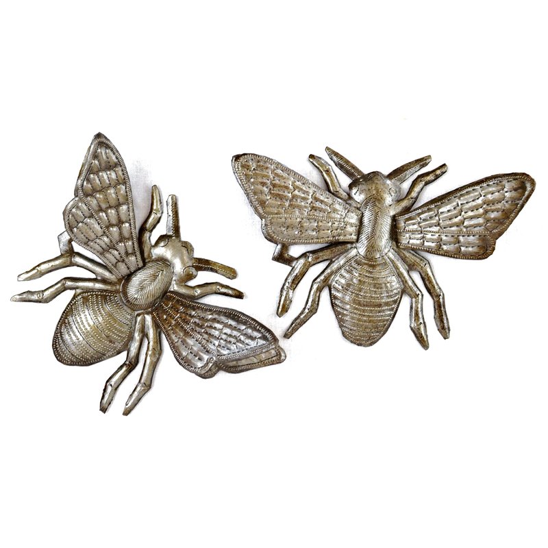 - STUNNING RECYCLED HAITIAN METAL BUGS WALL DECOR- Our recycled metal honey bee wall decor will add a “buzz” of excitement to your indoor or outdoor wall. Each one of these unique recycled metal wall art garden bees have been handcrafted by young artisans in over 100 villages in Haiti. These 6 x 6 inch metal bees come as a pair and are the perfect addition to your home or garden walls.